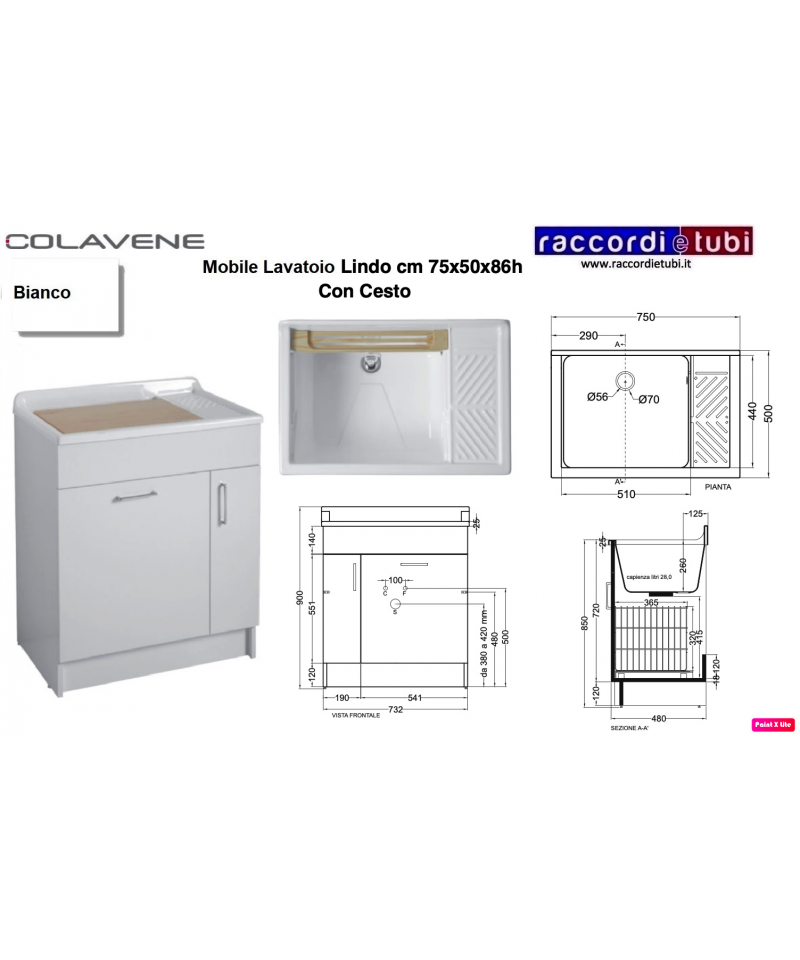 MOBILE LAVATOIO COLAVENE BIANCO 45X60X86H...
