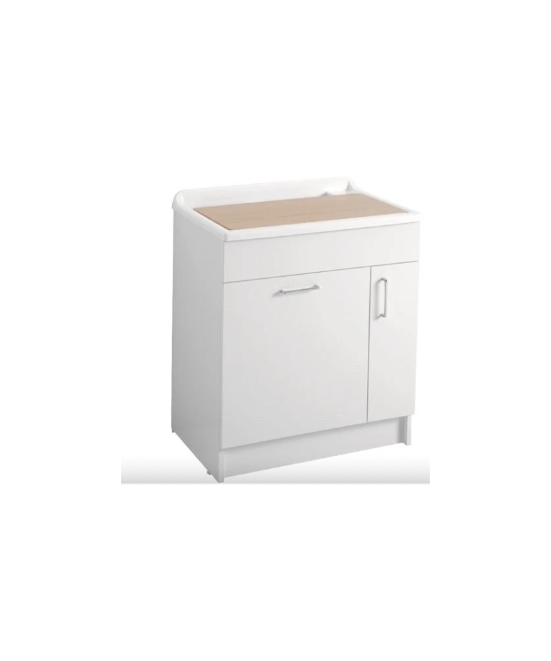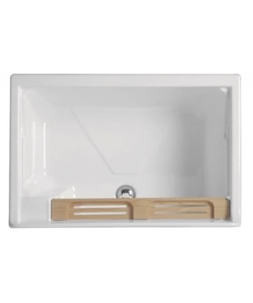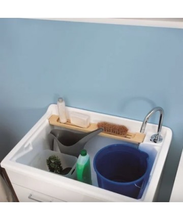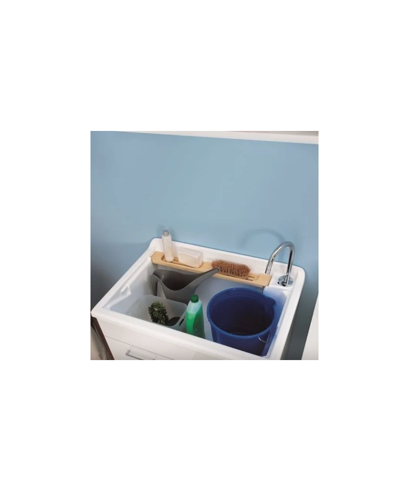 - Vollständig mit: Wäschekorb (schiebbar und herausnehmbar), Waschbrett aus Massivholz, Siphon und Überlauf