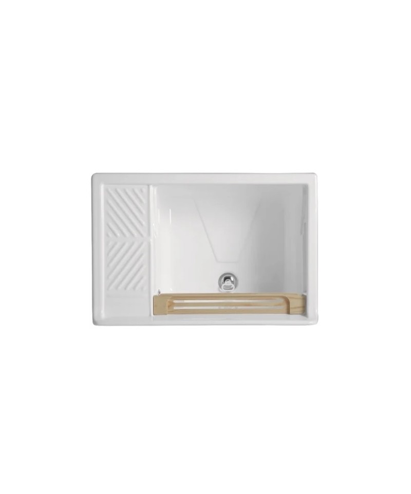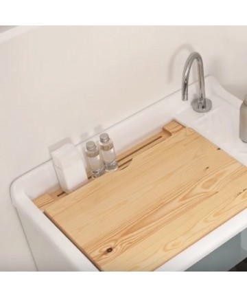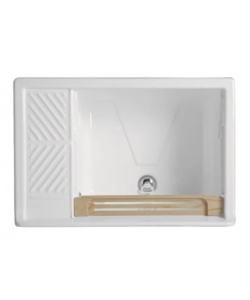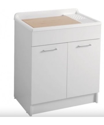 Eigenschaften: Möbelstück aus 18 mm beschichtetem Spanplatte. Wasserabweisend nach EN-Norm, glänzende Laminatfront. Ausstattung: vollständig mit Wäschekorb und Gitter, Massivholzplatte, Waschbecken aus ABS-Methacrylat, Siphon und Überlauf, verchromte Griffe.