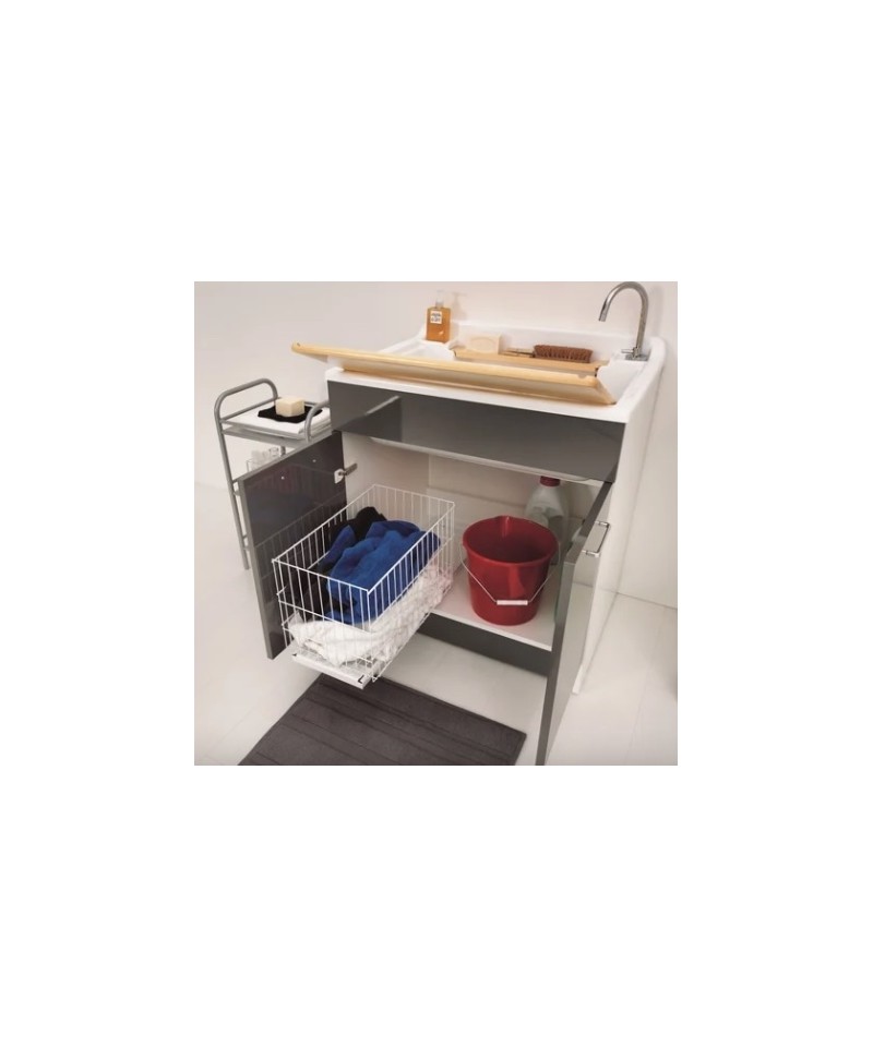 - Vollständig ausgestattet mit: Seifenschale, Waschbrett aus Massivholz, Siphon und Überlauf