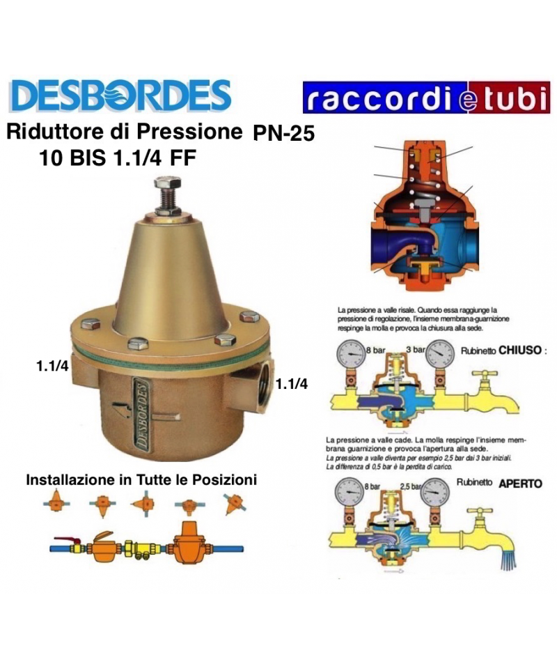 Die Druckreduzierer Desbordes 11BIS und 11BIS RC verfügen über einen Bronze-Körper, sind unempfindlich gegenüber Kalk und Verunreinigungen im Wasser und benötigen keine Wartung. Bei Verwendung mit inerten Gasen (Druckluft, neutrale Gase) können sie sowohl als Regler als auch als Druckreduzierer fungieren. Wenden Sie sich an das Unternehmen für weitere Informationen zu diesen Anwendungen. Druckreduzierer Desbordes 11BIS und 11BIS RC Wichtig: Die angegebenen Werte für Temperatur und Druck für die verschiedenen Flüssigkeitskategorien (L1/L2/G1/G2) stellen keine Garantie für die Nutzung dar. Daher ist es notwendig, die Verwendung des Produkts unter bestimmten Betriebsbedingungen mit Unterstützung unseres technischen Büros zu validieren. Fordern Sie das Benutzerhandbuch bei unseren Vertriebsbüros an.