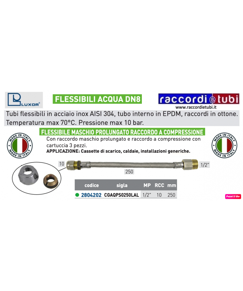 Flexible Rohre aus rostfreiem Edelstahl AISI 304, inneres Rohr aus EPDM, Messinganschlüsse.