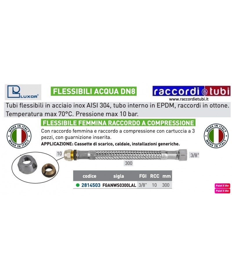 Flexschläuche aus Edelstahl AISI 304, Innenschlauch aus EPDM, Anschlüsse aus Messing.
