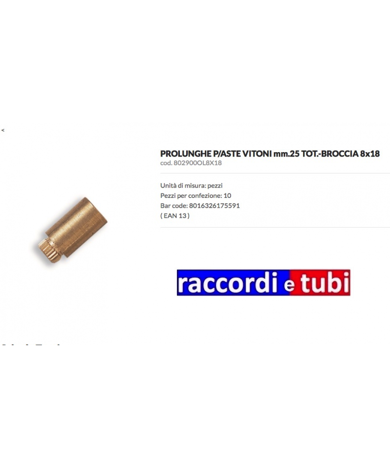 VERLÄNGERUNGEN FÜR VITON-STANGEN mm.25 TOT.-BOHRUNG 8x18cod. 802900OL8X18