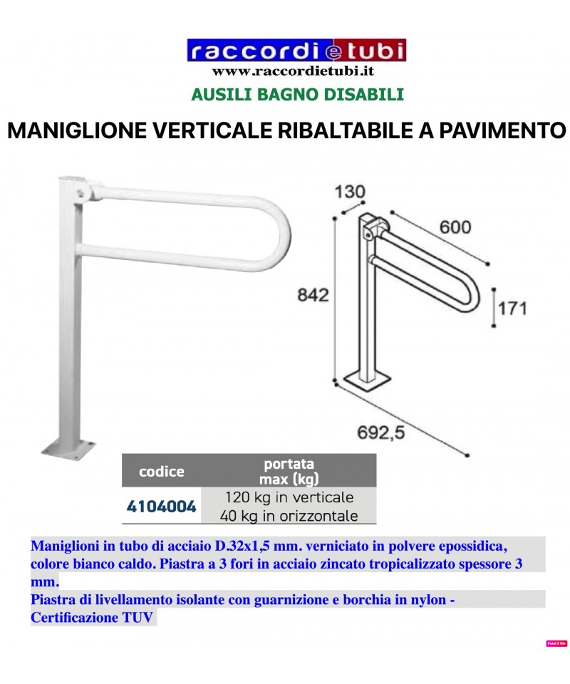 Sicherheitsgriff linear, hergestellt aus einem nahtlosen verzinkten Stahlrohr, beschichtet mit biokompatiblem, warm-touch Vinyl