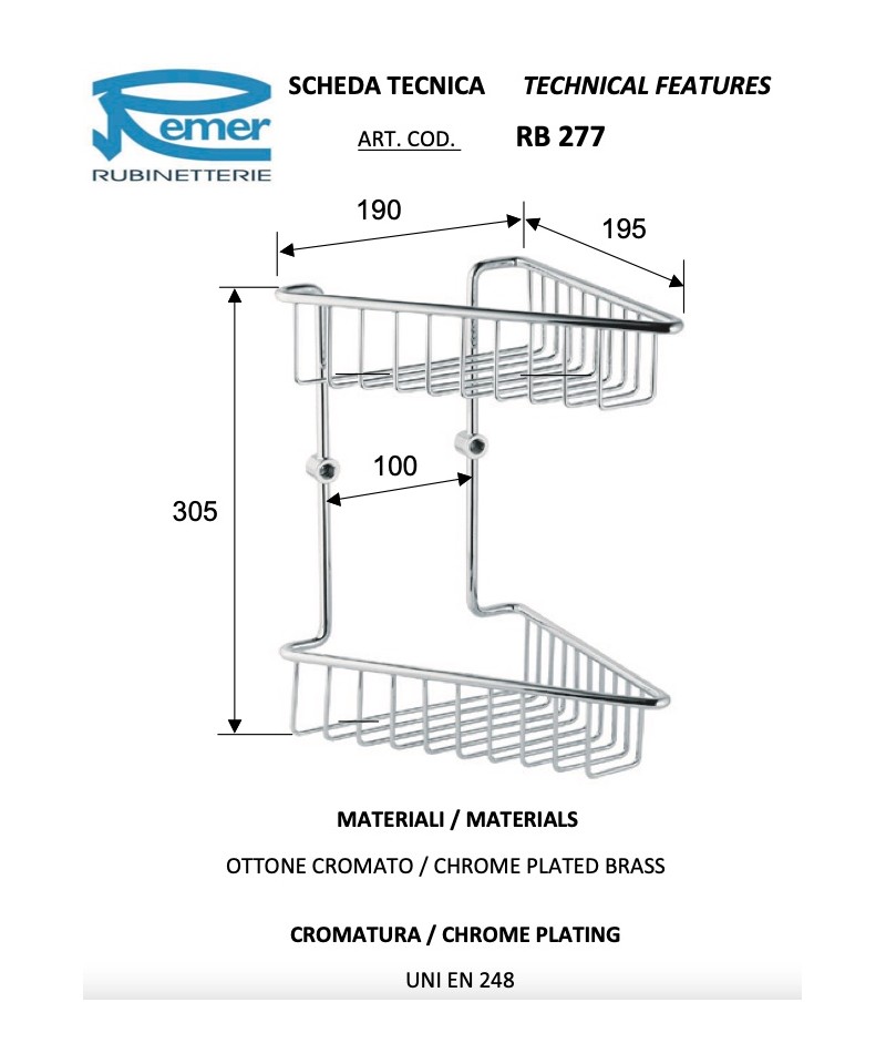SEIFENHALTER AUS VERCHROMEERTEM BRASS REMER RB273 ECK