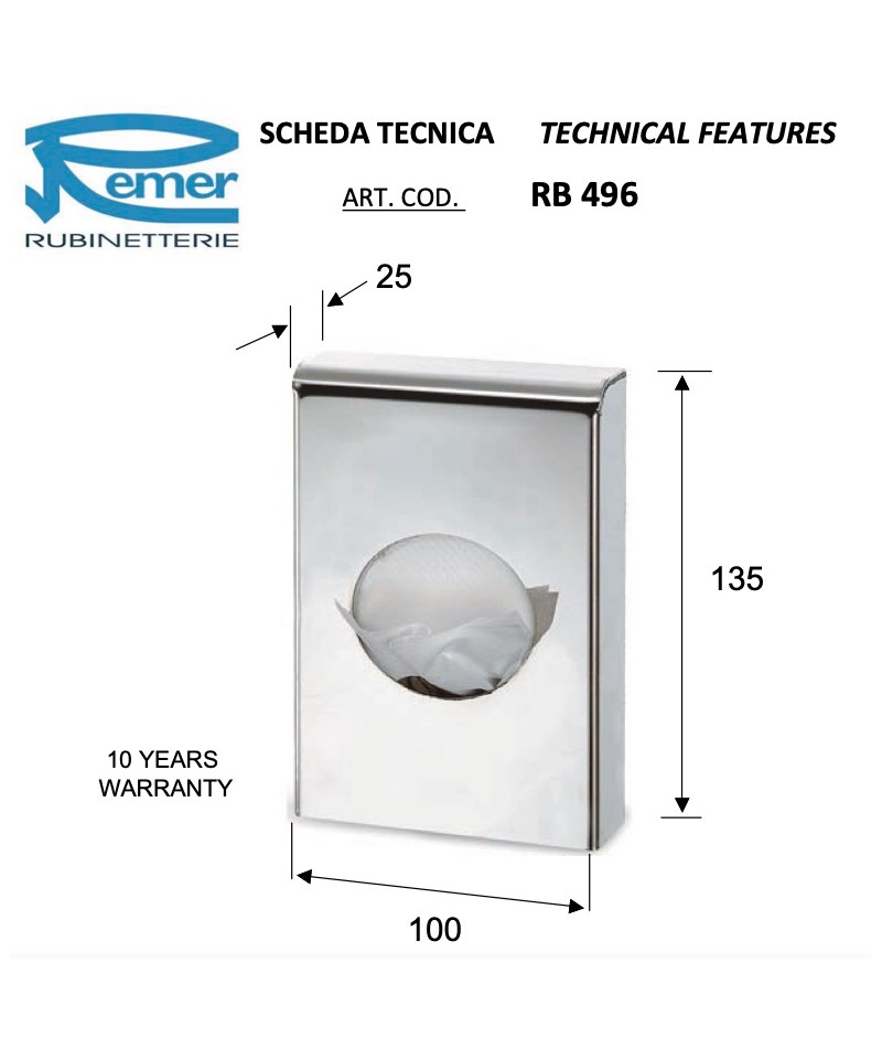 Der Taschentuchhalter aus verchromtem ABS ist speziell für die Nutzung in Hotels, Büros, Badezimmern, Schulen und Krankenhäusern konzipiert. Das Design ist zwar einfach, wirkt gleichzeitig aber innovativ und passt perfekt zu jeder Art von Einrichtung. Remer, Synonym für Qualität und Stil, zeigt seine Exzellenz durch das stetig wachsende Netzwerk von Kunden weltweit.
