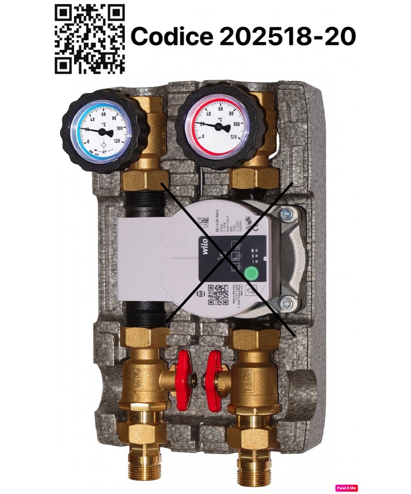 als häufigste Ausführung. Bei dieser Art der Installation ist es erforderlich, auf der Sekundärseite einen Kollektor zu montieren, falls zwei oder mehr Zonen über hydraulische Module gesteuert werden sollen. Daher muss es notwendig sein, die beiden nicht verwendeten Anschlüsse abzudichten.