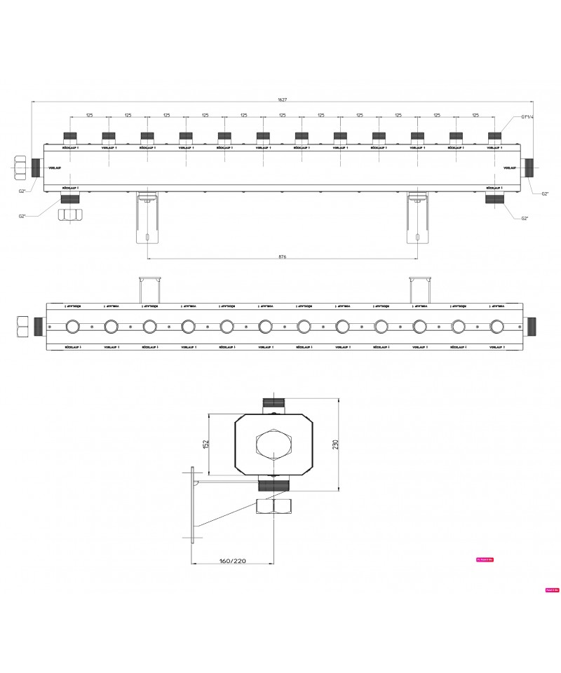 Verteiler für Heizungsanlagen aus elektroschweißenden und verzinkten Rohren. Das Sortiment unterteilt sich in drei verschiedene Größen: