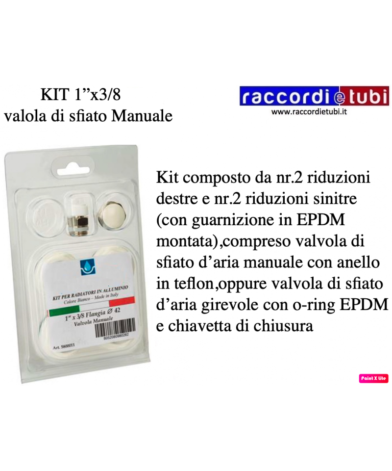 KITT bestehend aus vier Reduzierungen für ALUMINIUMHEIZKÖRPER Flansch mm.42 1''x3/8 Ral 9010 manuelles Entlüften