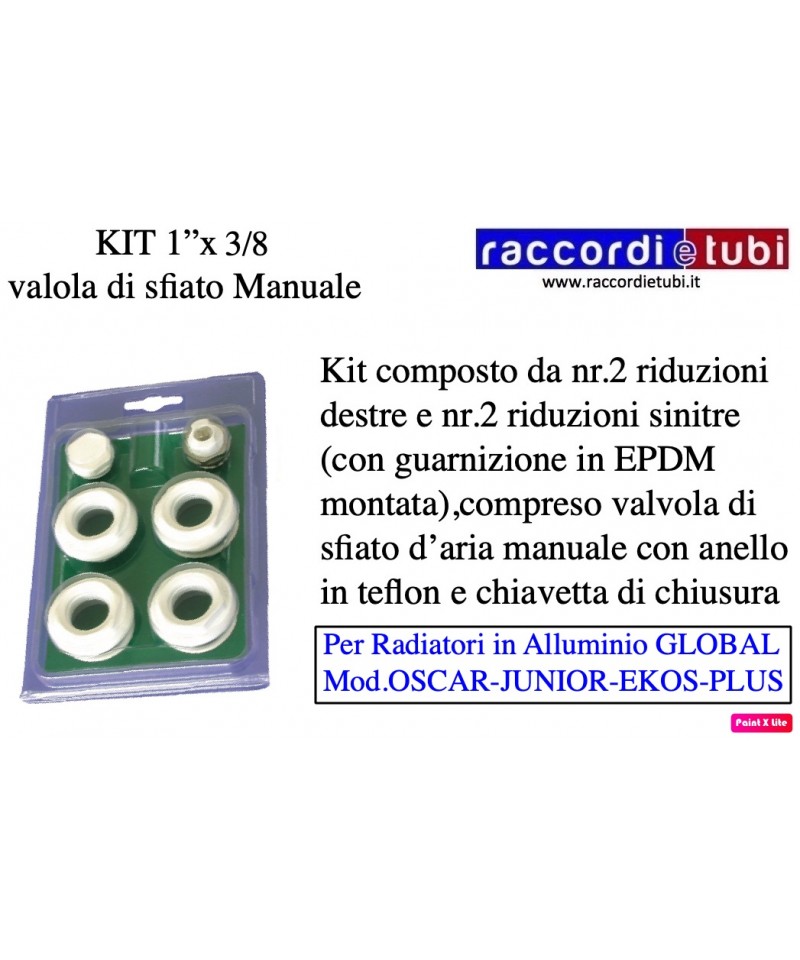 KITT bestehend aus vier Reduzierungen für ALUMINIUMHEIZKÖRPER Flansch mm.42 1''x3/8 Ral 9010 manuelles Entlüften