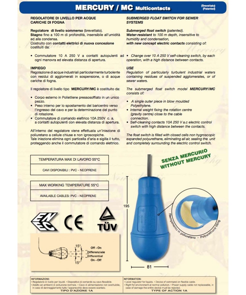 • Spannung: 230 V - Frequenz: 50/60 Hz