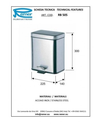 PORTARIFIUTI REMER RETTANGOLARE 5 LITRI