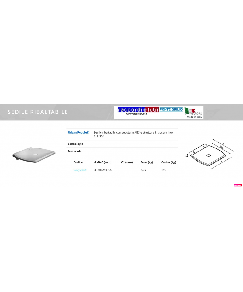 Sedile ribaltabile con seduta in ABS, realizzato con tubo di acciaio verniciato con polvere termoplastica sintetica. Colori disponibili W7 Bianco Lino Seggiolino ribaltabile con seduta integrale, indicato principalmente per l’uso in bagno. Di aspetto estetico gradevole, facile da pulire, è privo di elementi che possano causare infortuni ed è caratterizzato da un’ineguagliabile robustezza. L’articolo, fornito non assemblato, ha una struttura in tubo di acciaio con finitura esterna Rilsan®, polvere termoplastica sintetica di origine vegetale. La seduta, integrale termoformata, è in ABS-PMMA bianco. L’ancoraggio a muro è garantito da un sistema di fissaggio realizzato con piastre in acciaio inox AISI 304, abbinate ad un sistema di frizione anticaduta libera, munite di contro-piastre di livellamento e copri-piastra ad incastro rapido, realizzate in PA6 con finitura lucida. E’ prodotto impiegando materiale eco-compatibile, con una percentuale di materia prima riciclata, a sua volta riciclabile.