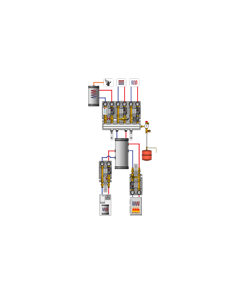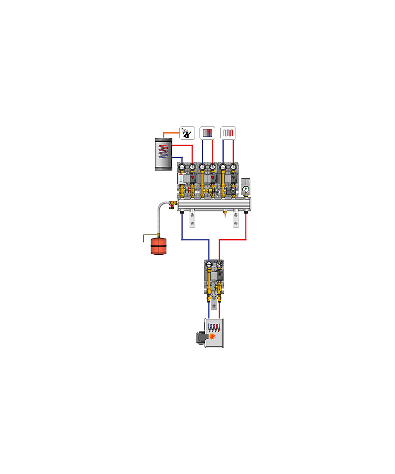 Collettore di distribuzione isolato per potenze fino a 50 kW (con salto termico ΔT = 20 K nel circuito primario).