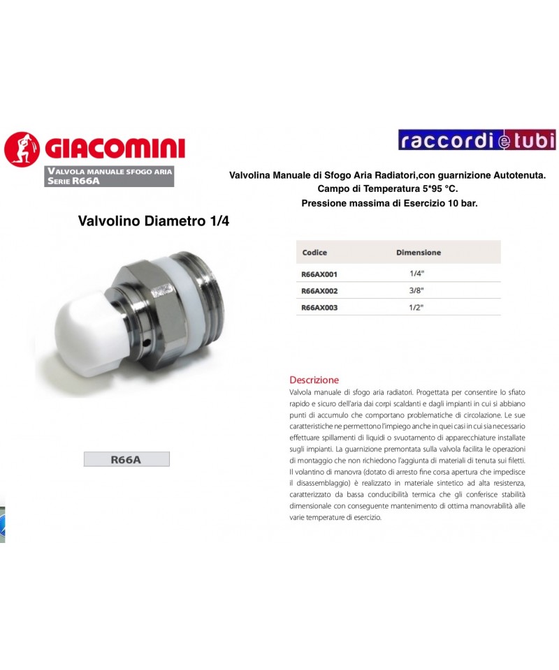 VALVOLA DI SFIATO 1/4 MASCHIO IN OTTON PROFESSIONAL