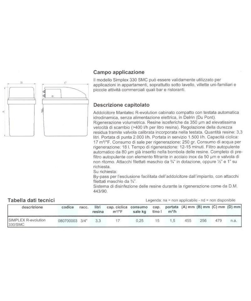 nel corpo valvola. Ad uso potabile. Vantaggi: risparmio fino al 80%* di sale e acqua sia con basso che con alto utilizzo del sistema.