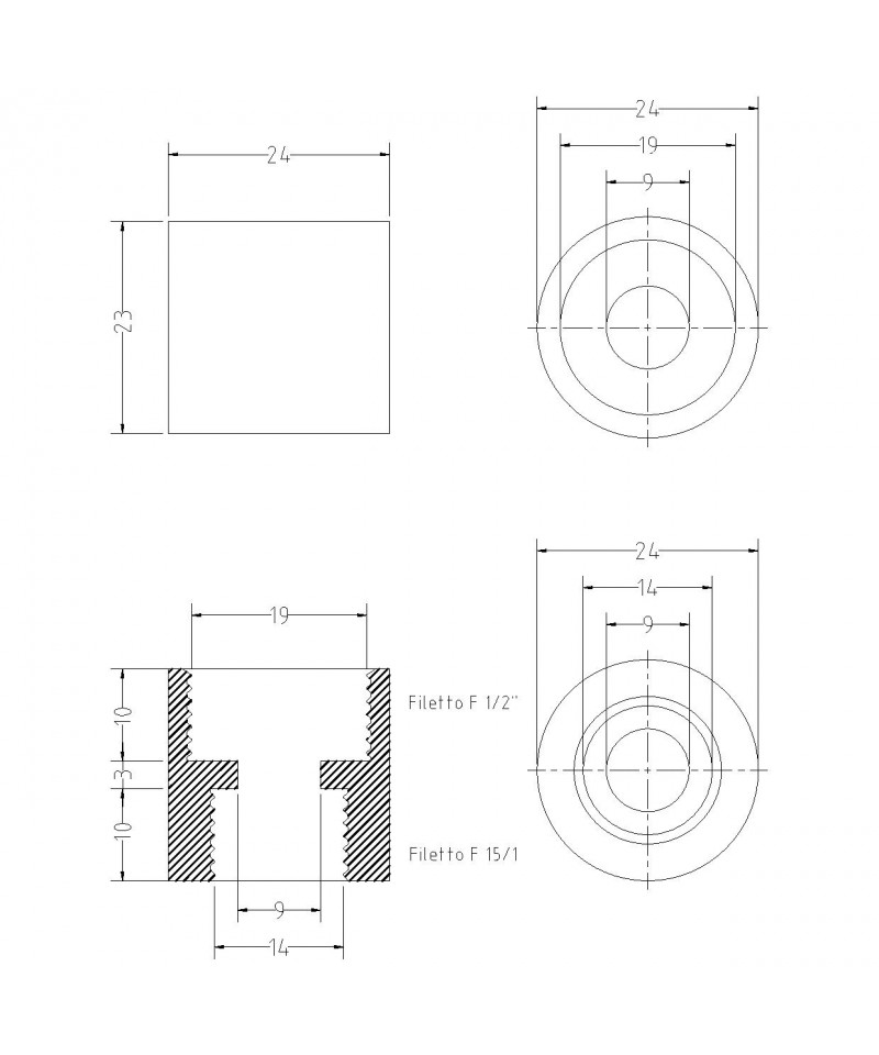 - Misure:Attacchi FF1/2"x15/1