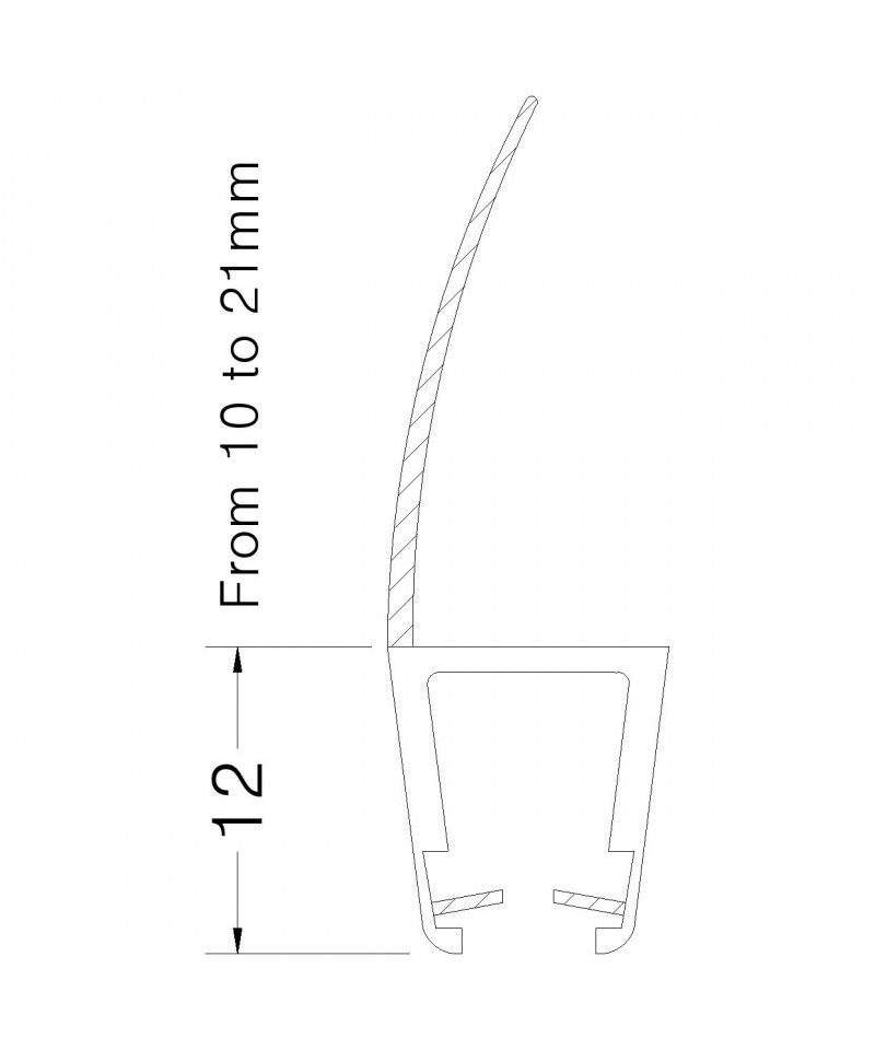 PROFILI P/BATTUTA PORTA BOX CRISTALLO mm.6 - 8 SPORGENZA ALA mm.21
