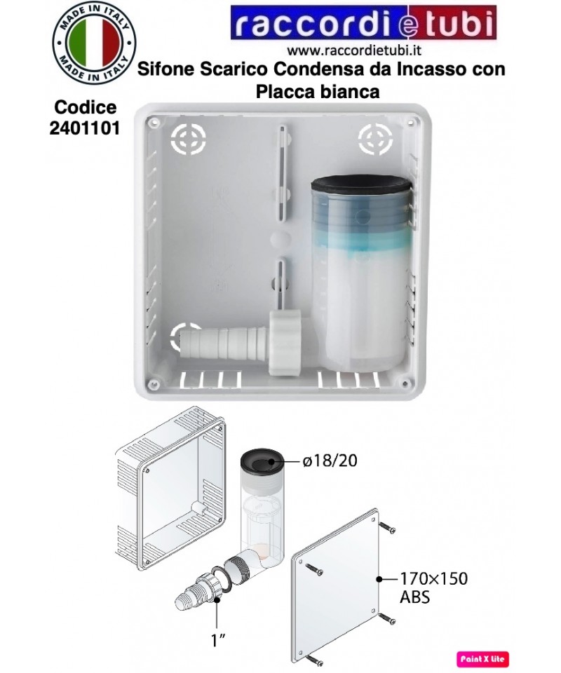 SIFONE SCARICO CONDENSA DA INCASSO CON SIFONE E PLACCA BIANCA