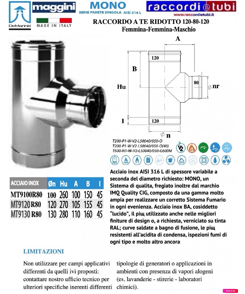 Acciaio inox AISI 316 L di spessore variabile a seconda del diametro richiesto: MONO, un Sistema di qualità, fregiato inoltre dal marchio IMQ Quality CIG, composto da una gamma molto ampia per realizzare un corretto Sistema Fumario in ogni evenienza. Acciaio inox BA, cosiddetto “lucido”, il più utilizzato anche nelle migliori finiture di design o, a richiesta, verniciato su tinta RAL; curve saldate a bagno di fusione, le più resistenti all’acidità di condensa, ispezioni fumi di ogni tipo e molto altro ancora: chiedi ai nostri uffici maggiori informazioni.