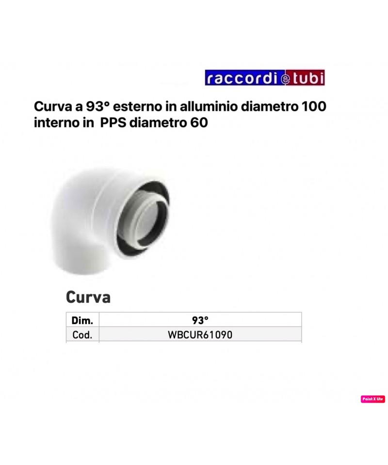 CURVA COASSIALE PER CALDAIE A CONDENSAZIONE ALLUMINIO ESTERNO PPS INTERNO DIAMETRO 100/60 93°