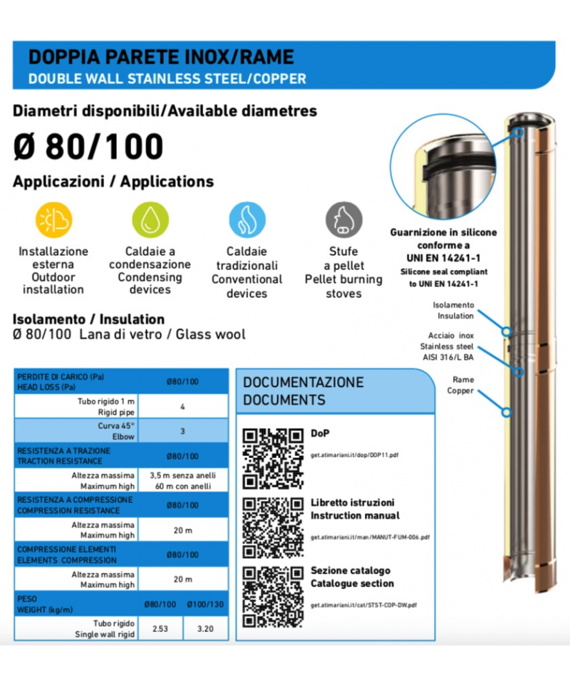 TUBO ATI COIBENTATO CON INTERNO ACCIAIO INOX 316L ESTERNO RAME