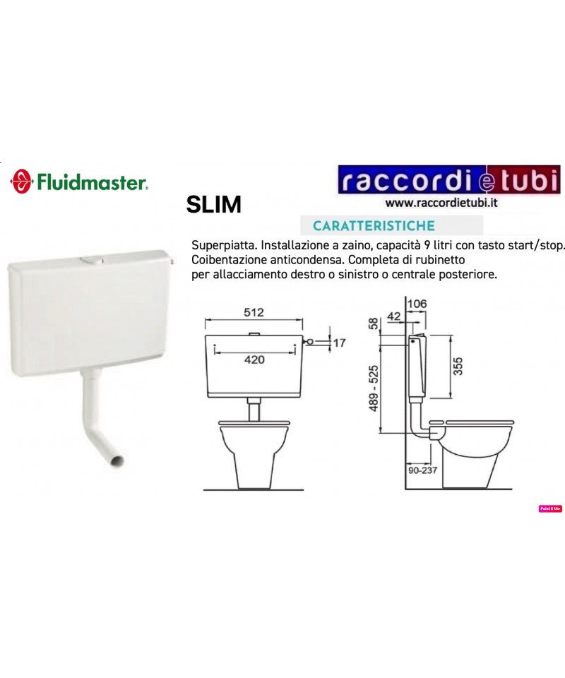 Cassetta di risciacquo per WC per installazione a zaino o alta