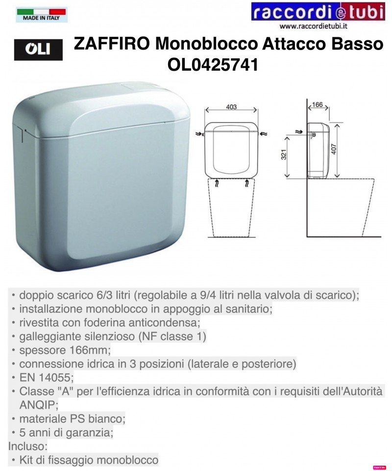 - Le cassette di scarico OLI sono realizzate in materiale termoplastico brillante con elevata resistenza agli urti e ai graffi. Alcuni modelli sono accessibili in una vasta gamma di colori, oltre al tradizionale bianco brillante. Zaffiro è una cassetta esterna monoblocco in appoggio al sanitario ideale, per la sostituzione di cassette in ceramica monoblocco.
