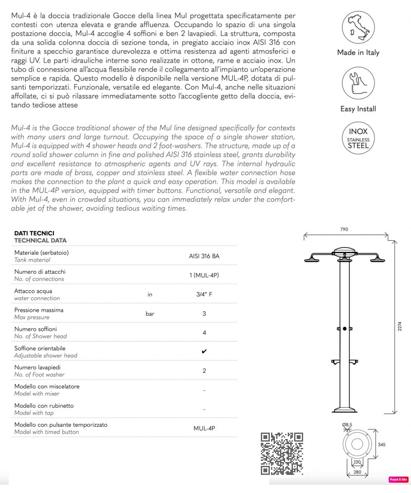 La Serie Inox di Idral è un vero e proprio simbolo di eleganza e raffinatezza. Le sue colonne doccia, disponibili in diverse versioni e finiture su richiesta, sono interamente realizzate in acciaio inossidabile AISI 316L. Queste soluzioni non solo aggiungono un tocco di classe a piscine private, resort e centri benessere, ma rappresentano anche una scelta affidabile e duratura nel tempo, grazie alla loro resistenza agli agenti atmosferici.