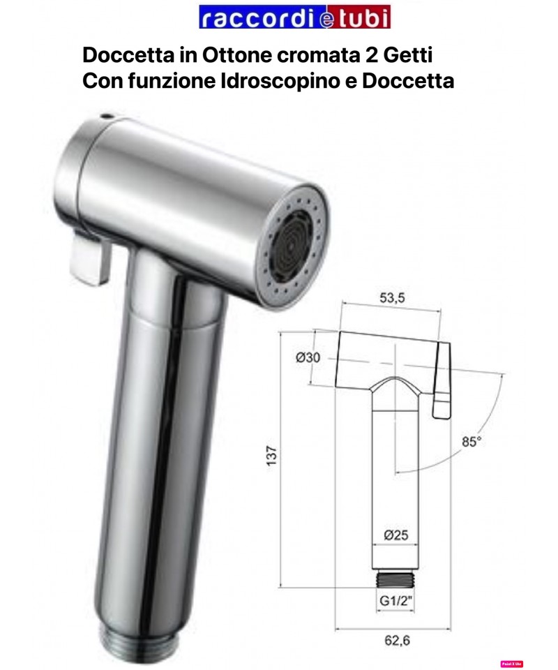 DOCCETTA IN OTTONE CROMATO 2 GETTI IDROSCOPINO CENTRALE E DOCCETTA ALL'ESTERNO