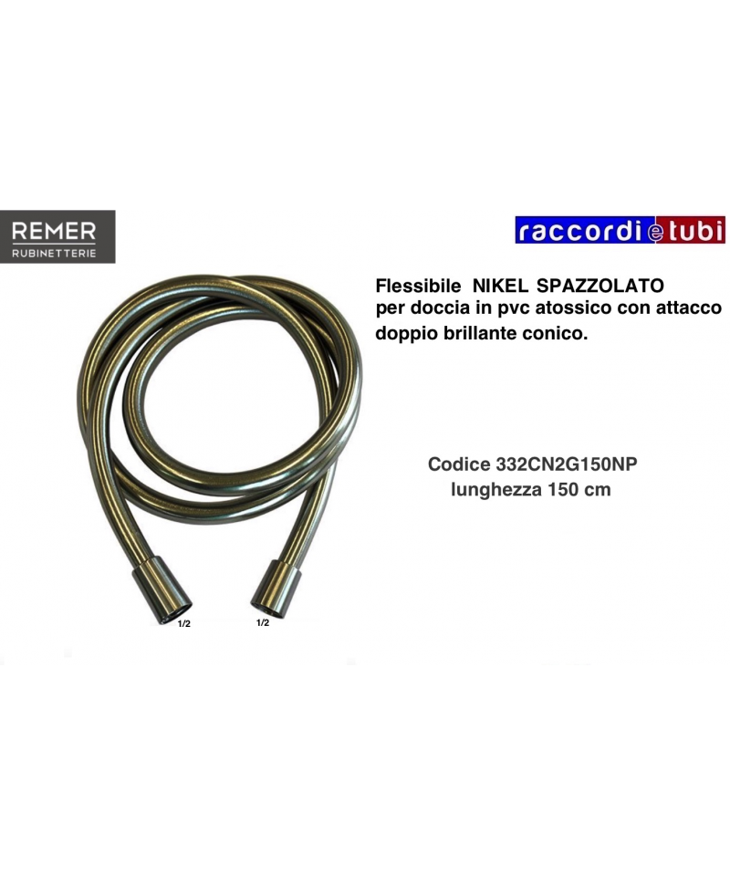 Flessibile NICHEL SPAZZOLATO per doccia in pvc atossico con attacco doppio brillante conico.