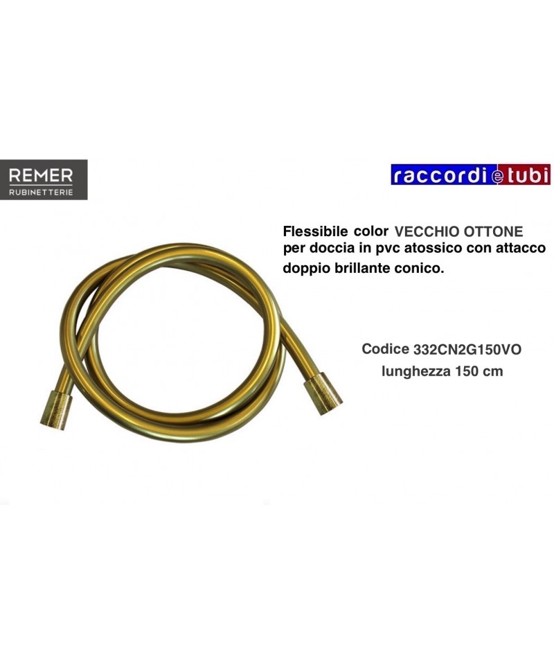 Flessibile color VECCHIO OTTONE per doccia in pvc atossico con attacco doppio brillante conico.