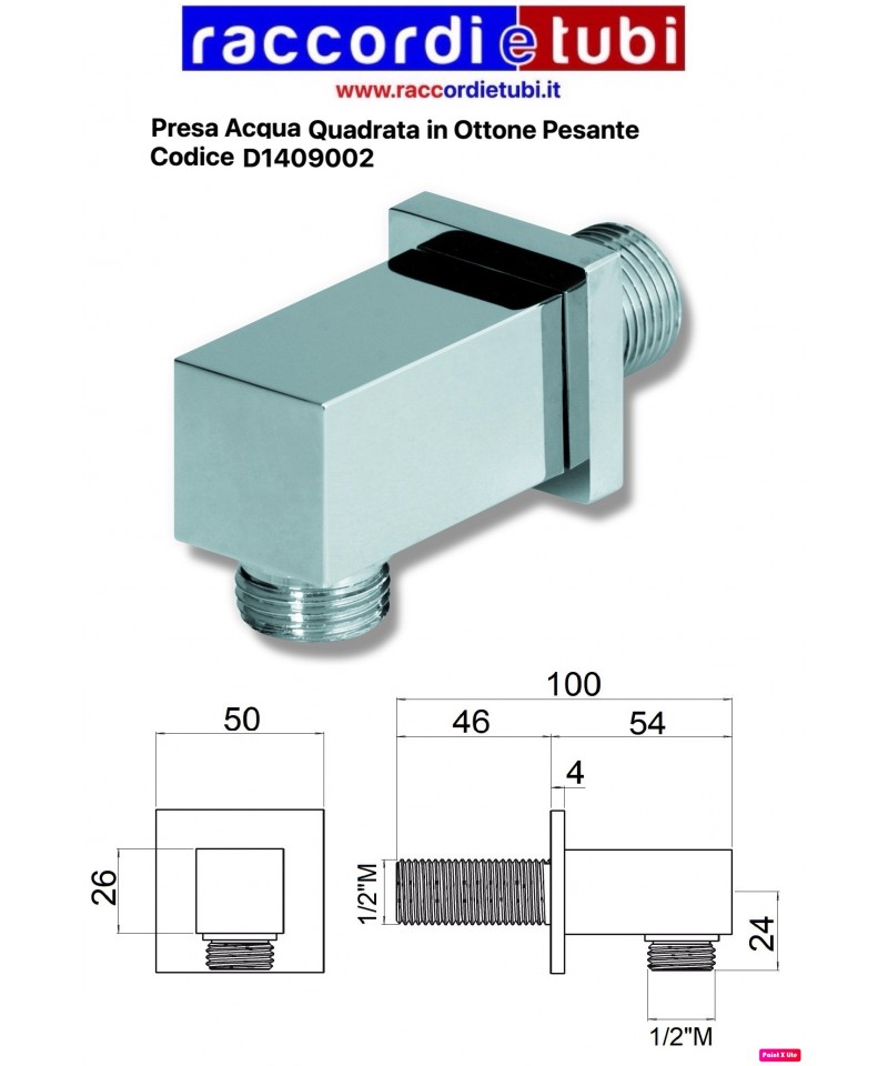 PRESA D'ACQUA QUADRATA IN OTTONE PESANTE CROMATA