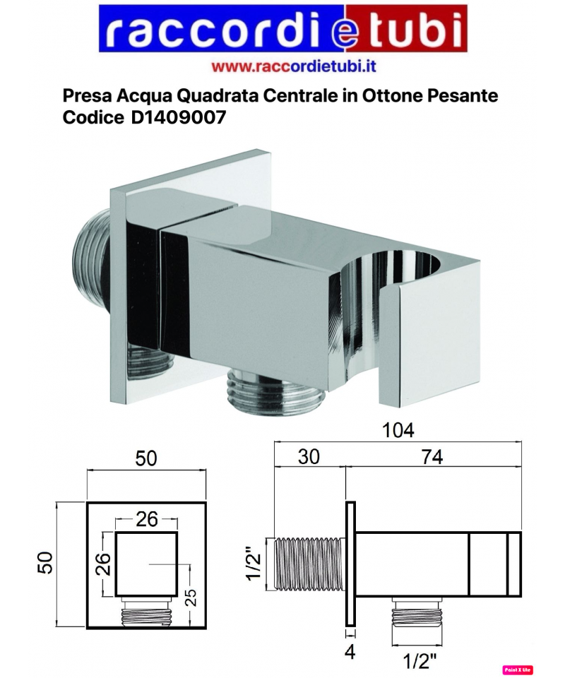 PRESA D'ACQUA CENTRALE QUADRATA IN OTTONE CROMATA