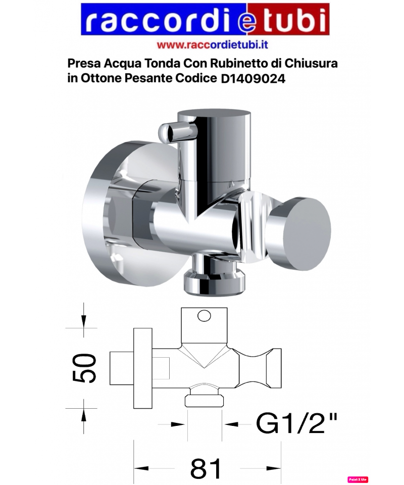 PRESA D'ACQUA TONDA CON RUBINETTO DI CHIUSURA IN OTTONE CROMATO