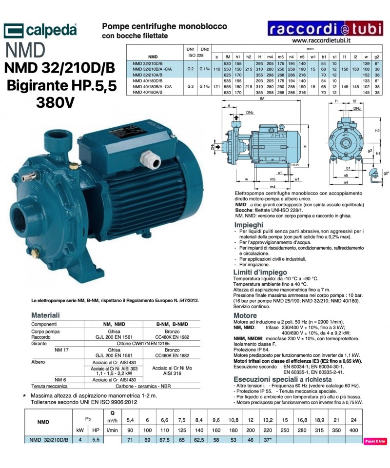 Impieghi: approvvigionamento idrico, impianti di pressurizzazione, irrigazione