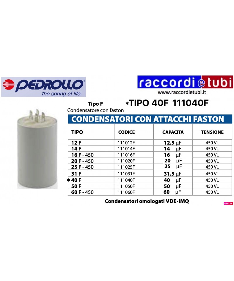 CONDENSATORE CON ATTACCHI FASTON