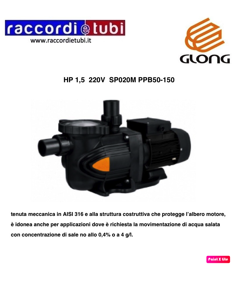 Per la circolazione dell'acqua negli impianti di filtrazione per piscine. Per acqua pulita o leggermente sporca con corpi solidi in sospensione.