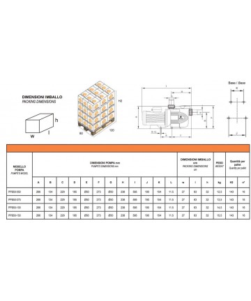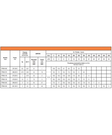 Pressione massima ammessa nel corpo pompa: 2,5 bar. Servizio continuo.