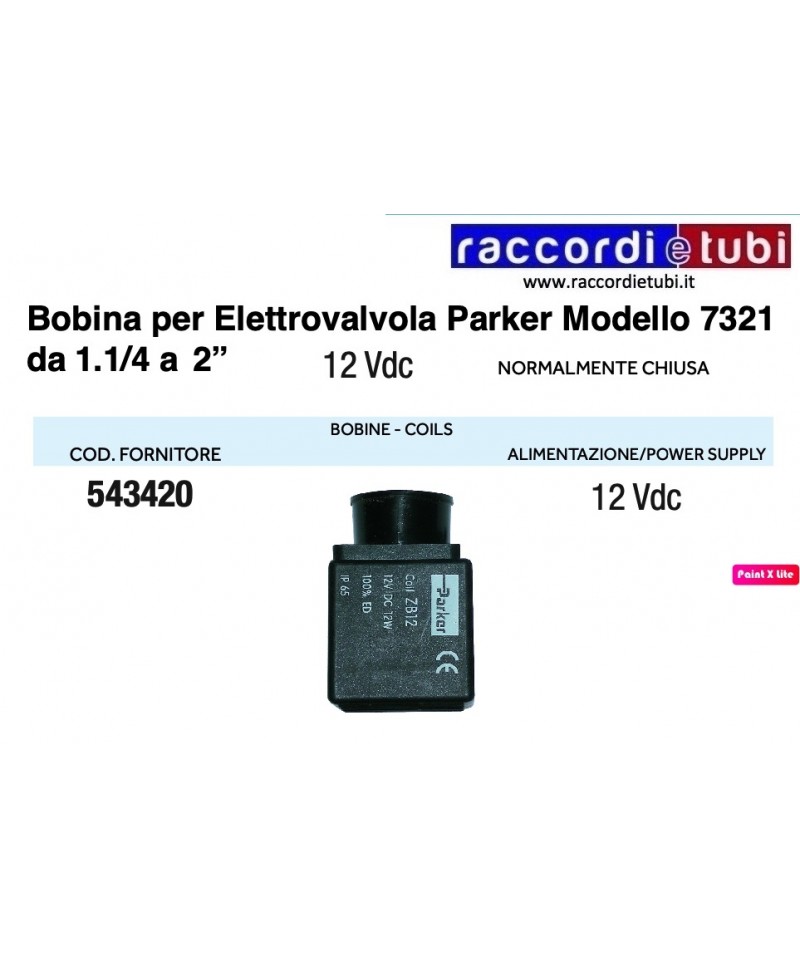 BOBINA PER ELETTROVALVOLA PARKER 12V CC 1.1/4*2"