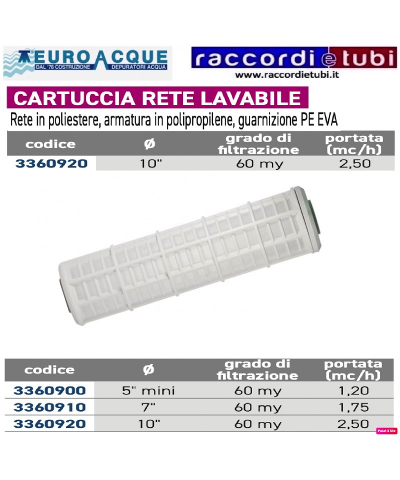 dell'elemento filtrante. I modelli disponibili sono da 9" - 20" (a richiesta 5" - 7").