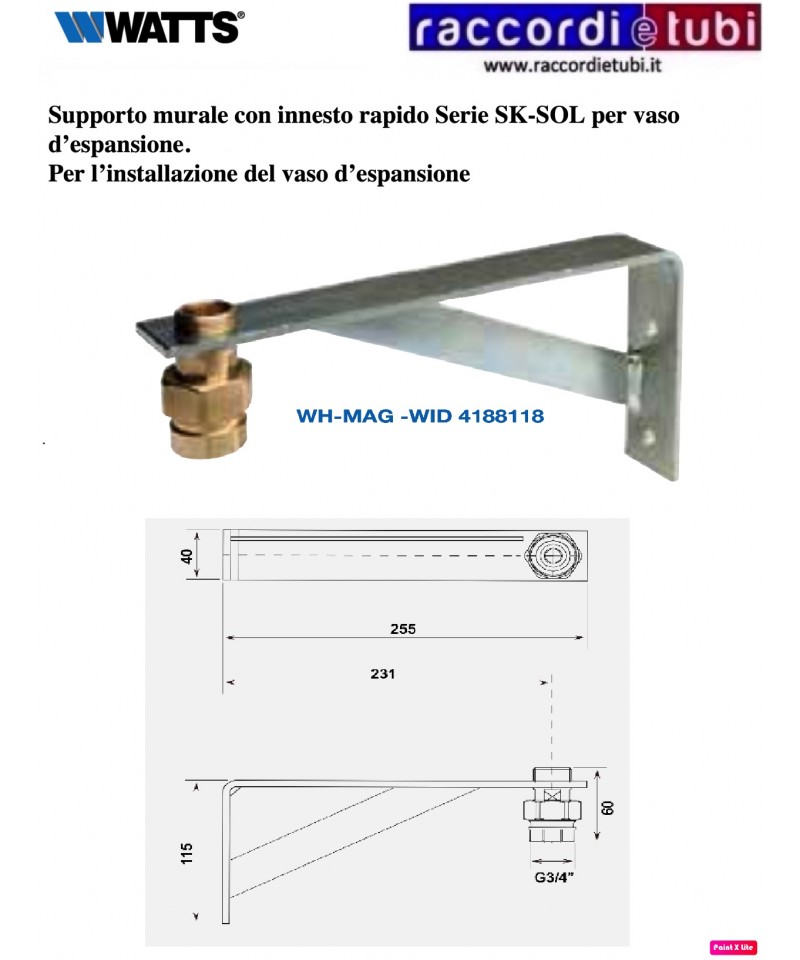 Supporto murale con innesto rapido Serie SK-SOL per vaso d’espansione.