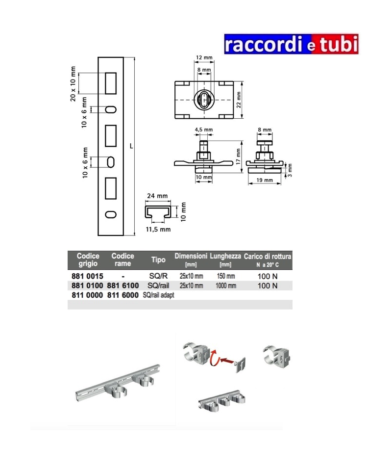 Specifiche - Per fissare più StarQuick® - Si può realizzare un fissaggio completamente in materiale plastico - È possibile il fissaggio da entrambi i lati del profilo Caratteristiche tecniche - Materiali: Profilo PVC; Adattatore PA 6 - Idoneo per tubi fino a diametro 35 mm (StarQuick SQ32)Art. 881 e 811 StarQuick® profilo e adattatore