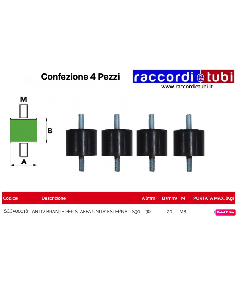 ANTIVIBRANTE 30x20mm Filetto M8 Confezione 4 Pezzi scc500018