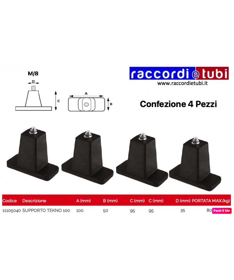 - Supporto antivibrante realizzato con mescola di gomma SBR vulcanizzata, stabilizzata contro i raggi UV.