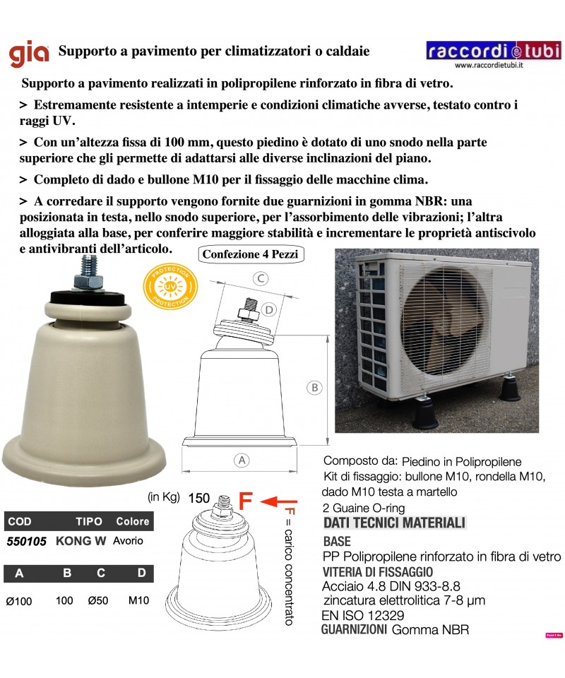Tutti i piedini sono realizzati in gomma naturale vulcanizzata anti uva. Disponibili in confezione minima da 4 pezzi completi di bulloni di fissaggio, rondella e dadi