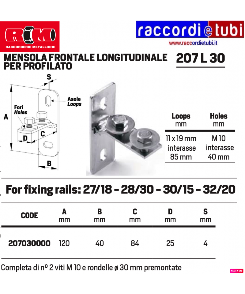 CORRAIL CONNESSIONE PER PROFILI COMPLETA DI DADI SCIVOLANTI PRE-ASSEMBLATI