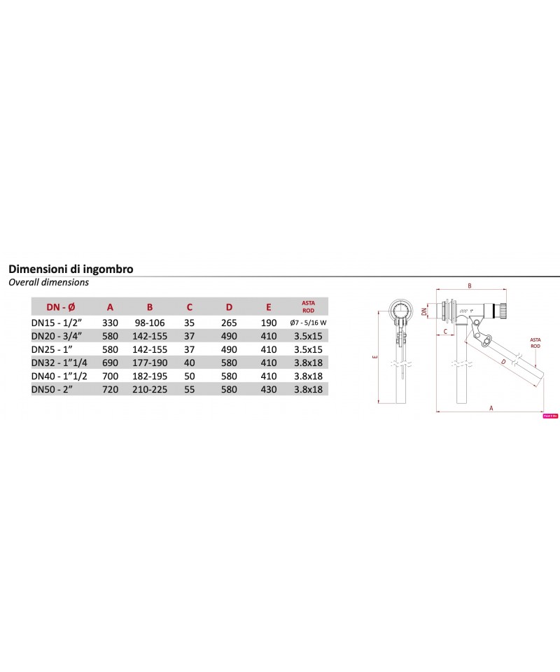 Per alte pressioni PN 12 Asta piatta AISI 430 REGOLABILE, completo di tubo di carico.