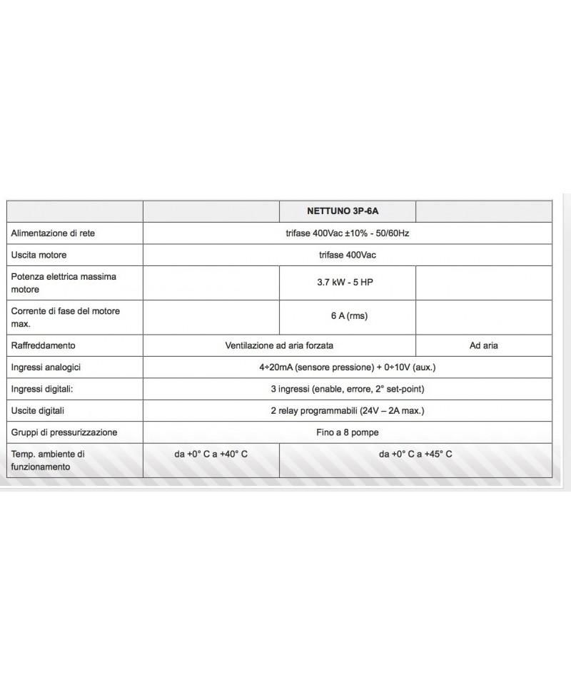 Nettuno è un dispositivo elettronico che controlla l'avvio e l'arresto di una elettropompa, basato su tecnologia ad inverter. Grazie a questa tecnologia esso è in grado di modulare la frequenza (Hz) della corrente che arriva al motore in modo da farne variare il regime di rotazione giri/minuto a seconda della richiesta di acqua dall'impianto.